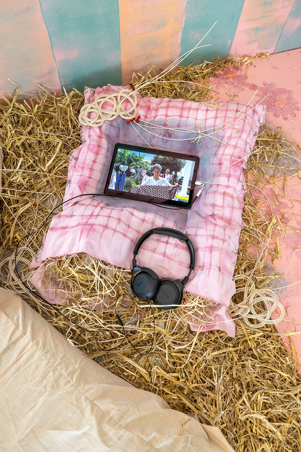 Les personnages qui peuplent l’écosystème de Rozy Tergemina Sapelkine, comme le letchi, la grenouille, l’âne ou la patate douce, sont des allégories de la sagesse subversive et de la dissidence. Évoluant dans des performances sans scènes inspirées d’art de rue et des récits diasporiques de l’océan Indien, iels revendiquent leur appartenance à l’art populaire tout en s’immisçant avec malice dans les espaces élitistes du monde de la culture.