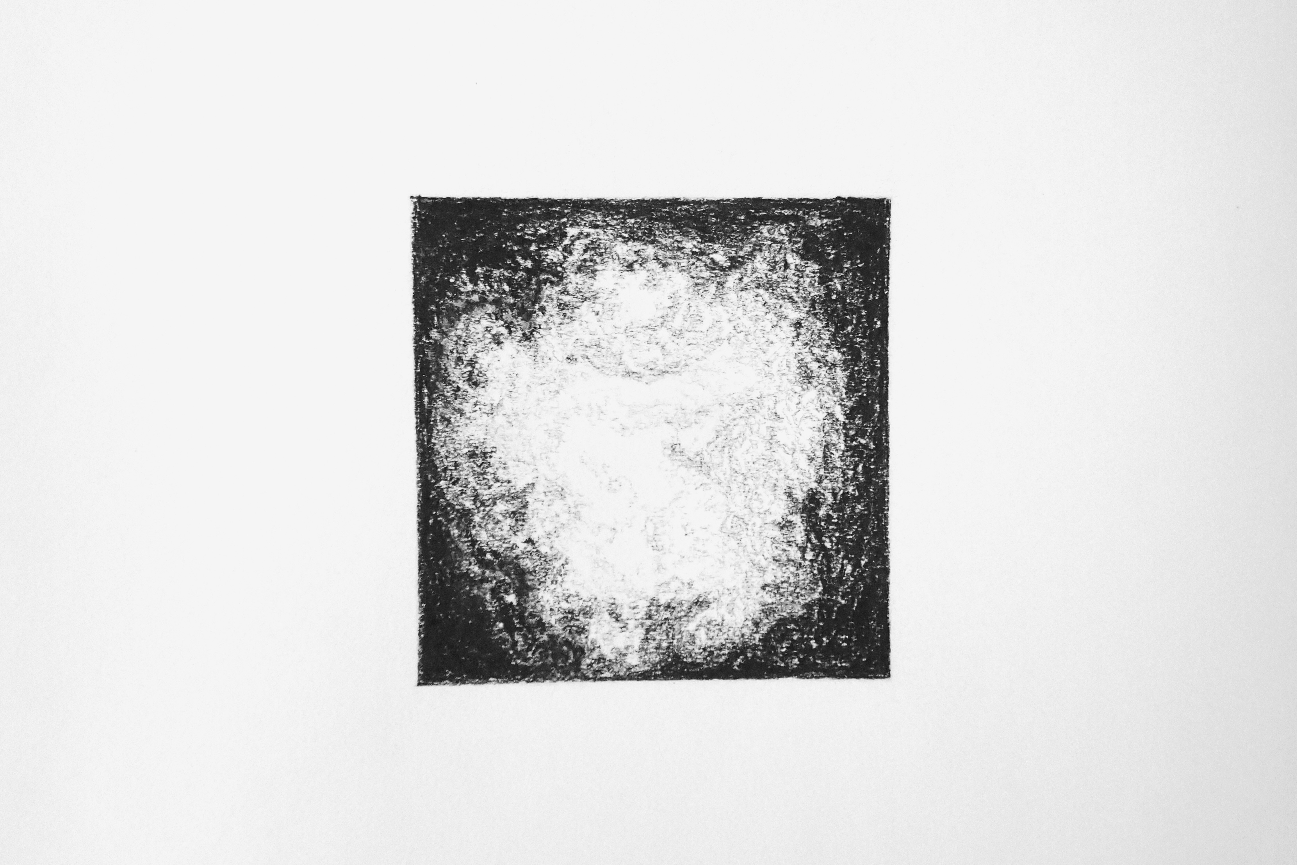 Dans cette série de dessins, comme dans les USB (unités structurelles de base), l’artiste s’attache à rendre visible l’essence ou l’histoire de la matière. Le graphite sur papier ou les briques de charbon compressées évoquent ainsi l’aspect formel de l’agencement des atomes de carbone. Ailleurs les plaques de plâtre enduites de graisse laissent apparaître les traces de leur séjour dans l’atelier. Quelles que soient les pièces, leur matérialité ne semble paradoxalement pas nier l’aspect photographique de la démarche, il s’agit de révéler.